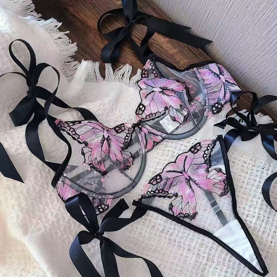 Butterfly Lace Transparent Bra Panty Set
